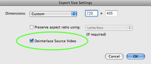 Most commercial editing software provides an option to deinterlace video upon exporting (see Figure 3). Click it. If you don’t like the way the video looks after interlacing, you can always re-export the edited movie to without it.
