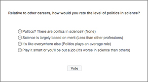 These days, it’s hard to ignore Washington. With increasingly partisan bickering and near record low congressional approval ratings, it’s clear to see how politics in the workplace (especially when it’s politics itself!) can affect job performance. But as a career, how does science rate- are internal politics preventing real progress?