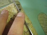 Using a gentle sawing motion, slice your loaf into 1/8 thick slices,